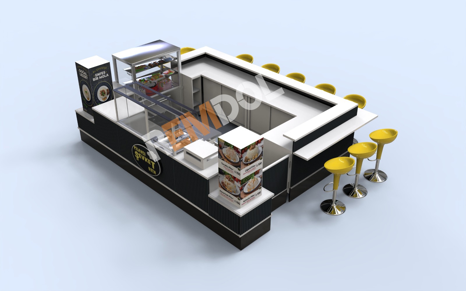 AVM’de pilav standı açmak, yüksek müşteri trafiğinden faydalanarak işletmenizi büyütme fırsatı sunar. Remdol Endüstriyel, AVM ortamına uygun, şık ve fonksiyonel pilav standları tasarlar. Bu standlar, modern tasarımları ve kullanım kolaylıkları ile hem müşterilerin ilgisini çeker hem de hızlı ve verimli bir servis sunmanıza olanak tanır.